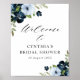 Póster cartel de bienvenida para baby shower floral azul