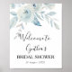 simple letra script y cartel de bienvenida para baby shower nupcial floral azul claro. El texto y los colores de este cartel pueden ser editados.