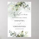 Cartel de bienvenida para cena de ensayo con follaje verde, Contáctame para artículos coincidentes o para personalizar, Rosas Rosadas ©