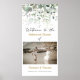 Cartel de bienvenida para cena de ensayo - Este diseño presenta una composición de acuarela de hojas verdes con confeti de efecto dorado y verde. Puedes cambiar la foto o simplemente eliminarla y agregar tu información personal.