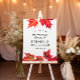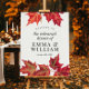 Establece el tono para tu celebración de otoño con este elegante cartel de bienvenida para cena de ensayo de hojas de otoño rojas. Un rico follaje acuarela de color rojo carmesí y naranja quemada enmarca tu texto personalizado, creando una entrada cálida y acogedora para tus invitados.