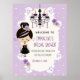Las invitaciones para despedida de soltera góticas de color púrpura, lavanda y negro son perfectas para una despedida de soltera o una fiesta de soltera con tema de Halloween. Sus invitados se deleitarán al ver esta bonita señal de bienvenida con tema gótico con una elegante araña negra y púrpura y una adorable chica gótica con lápiz labial negro y sombra de ojos lavanda que lleva un anillo de compromiso de amatista en un vestido de novia gótico con un corsé superior morado. Ella sostiene una copa de burbujeante que la hace perfecta para un brunch y un tema de ducha burbujeante también. Las rosas y florituras añaden un toque bonito y gótico al arte. Un patrón floral repetido en la parte posterior. Arte © Chrissy H. Studios, LLC. Todos los derechos reservados. Arte © Chrissy H. Studios, LLC. Todos