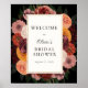 Bienvenidos a la despedida de soltera con este hermoso cartel, que cuenta con un marco dorado rodeado de flores de otoño y vegetación. Agregue el nombre de la homenajeada, la fecha de la celebración y el texto de bienvenida personalizado utilizando los campos proporcionados.