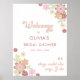 Haz una declaración con este cartel de bienvenida para despedida de soltera que presenta fuente de estilo de los 70, flores divertidas y tonos de rosa.