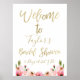 Elegante cartel de bienvenida para despedida de soltera con caligrafía de lámina dorada falsa y rosas de acuarela rosa. La invitación para la despedida de soltera con el mismo diseño también está disponible en la tienda.