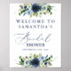 Cartel de bienvenida para despedida de soltera floral acuarela azul marino