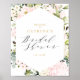 Cartel de bienvenida para ducha de novia floral con toque geométrico. El diseño presenta un marco geométrico adornado con florales rosados, blancos, eucalipto y otra vegetación. El encabezado se destaca con una tipografía caligráfica hermosa y elegante. Personalice utilizando los campos de plantilla proporcionados. Si necesita ayuda, por favor contáctenos utilizando el botón de contacto a continuación.