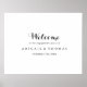 Este cartel de bienvenida para fiesta de compromiso con caligrafía moderna es perfecto para una celebración de compromiso sencilla. El diseño simple y elegante presenta tipografía de escritura clásica y elegante en negro y blanco.