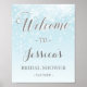Cartel de bienvenida en azul claro y plateado, ideal para una fiesta de novia, boda, fiesta de pareja o cualquier otra celebración con tema de invierno. Hecho para combinar con nuestra colección de copos de nieve azules de invierno.
