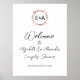 Un simple y elegante cartel de bienvenida con monograma floral en lámina de oro rosa para la fiesta de parejas. Fácil de personalizar con tus datos. Cartel de bienvenida moderno boho para la fiesta de parejas editable, personalizable, fuente manuscrita caligráfica, simple, elegante.