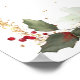 Elegante cartel de bienvenida para la cena de ensayo con vegetación invernal. Composición navideña de flor de pascua, hojas de acebo verdes y bayas rojas, piña y guirnalda de luces.