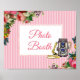 Cartel de boda de cabina de fotos floral de rosas rosadas y burdeos