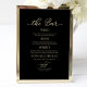 Cartel de boda negro caligrafía dorada barra de bebidas