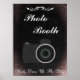 Cartel de boda para cabina de fotos, estilo pizarra con gráficos de cámara antigua.