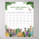 Calendario de fecha de entrega para niños diseñado en estilo tropical y con divertidos animales de safari como jirafa, elefante, leopardo, hipopótamo, león y cebra.