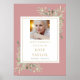 Una elegante celebración personalizada de la vida, cartel de servicio funerario conmemorativo que presenta follaje botánico de vegetación en acuarela sobre un fondo de rosa polvorienta. Diseñado por Thisisnotme©
