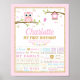 Póster Cartel de cumpleaños 1º personalizado de búho rosa