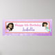 Cartel de cumpleaños de una niña morada rosada y Verde azulada hispana o afroamericana.