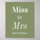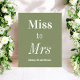 Póster de Señal de Despedida de Soltera de Verde Menta de Señorita a Señora en elegante letra de caligrafía. Este producto es parte de una colección, por favor revise nuestra colección de la tienda a continuación para encontrar artículos que coincidan.