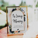 Diseño moderno y elegante impreso en Azul Marino Rosa Floreado Arco Marco Caligrafía Letra Signo de Boda En Memoria que se puede personalizar con tu texto. Por favor, haz clic en el botón "Personalízalo" y utiliza nuestra herramienta de diseño para modificar esta plantilla. ¡Consulta la tienda de Arte Gráfico para ver otros productos que coinciden con este diseño!