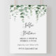 Este cartel de estación de selfie de eucalipto minimalista elegante es perfecto para una boda moderna o ducha de novia. El diseño cuenta con ramas y hojas de eucalipto botánico elegante dibujadas a mano con acuarela.