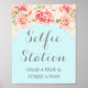 Cartel de estación de selfie para baby shower, bridal shower, cumpleaños o boda en azul pastel claro con flores de acuarela vintage rosadas. Perfecto para un baby shower, boda o bridal shower.