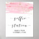 Este cartel de estación selfie rosa acuarela y dorado es perfecto para una boda con tema moderno romántico y dulce o una despedida de soltera. El diseño femenino lujoso cuenta con una textura de acuarela rosa claro con un toque de polvo de brillo dorado falso y una fuente de letra de caligrafía elegante.