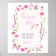 Hermoso letrero del bar Mimosa para tu fiesta de soltera de flores silvestres con delicado marco floral de hermosas flores silvestres rosadas. Bar Mimosa está escrito en elegante caligrafía. Diseño femenino suave con delicadas y aéreas flores silvestres en acuarela en tonos rosados. Diseño botánico inspirado en la naturaleza con floraciones románticas de jardín campestre y picos de flores. Por favor, explore mi colección de flores silvestres rosadas para encontrar artículos que coincidan o envíeme un mensaje para crear las plantillas que necesite.