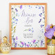 Hermoso letrero para el bar de Mimosa para tu fiesta de shower floral silvestre. El diseño botánico delicado y femenino está escrito a mano con "bar de mimosa" en caligrafía elegante. Tiene un bonito borde de flores silvestres en acuarela en tonos de lila, lavanda, púrpura, rosa y azul. Una floral moderna y delicada con un tema de jardín de cottage bohemio y femenino. Por favor, revise mi colección de flores silvestres púrpuras para ver artículos que combinan, o envíeme un mensaje para crear las plantillas que necesite.