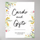 Carteles de tarjetas y regalos para la fiesta con un decorado precioso de flores silvestres.