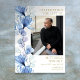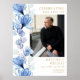 Un elegante cartel conmemorativo de funeral de foto floral azul de celebración de vida. Diseñado por Thisisnotme©