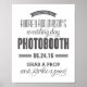 Tamaño 8 x 10" cartel de fotomatón de boda personalizado puede ser personalizado con los nombres de la novia y el novio y la fecha de la boda. El cartel dice "Bienvenidos al fotomatón del día de la boda de la Novia y el Novio, fecha de la boda (xx.xx.xx), ¡Toma un accesorio y haz una pose!". Colores negro, gris carbón y blanco.