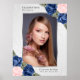 Póster Cartel de funeral de foto floral rosa azul acuarel