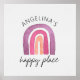 Convierte la habitación de tus hijos en su lugar personal de felicidad con este diseño minimalista pero colorido de arcoiris sobre un fondo con textura de papel de acuarela. Personalízalo fácilmente con el nombre de tu hijo para darle un toque personal. El diseño original de acuarela presenta un arcoiris morado y rosa centrado con texto.