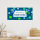 Banner de cumpleaños de polika azul y verde, signo de bienvenida, con grandes puntos de polka azul y verde y globos. Simplemente agregue el nombre de su hijo en el área de personalizar.