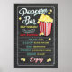 Letrero de cartel de menú de barra de palomitas de pizarra para su próxima fiesta. Cuenta con una gran caja de palomitas frescas y divertidas fuentes. Sin edición en esto. COMO ESTÁ.