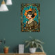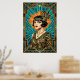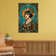 Póster Cartel de mujer flapper Art Déco en dorado y azul