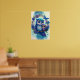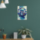 Cartel de nido - Mamá y bebé búho - Diseño azul y púrpura con búhos, flores y una mariposa. Ideal para habitación de niños, amantes de los animales y niños.