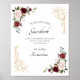 Póster Cartel de oro con flores de Borgoña para firmar nu
