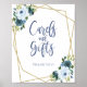Póster Cartel de tarjetas y regalos florales dorados azul