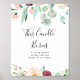 Esta señal de eucalipto contemporáneo que arde esta vela es perfecta para una boda sencilla. El diseño presenta acuarela púrpura, rubor, burdeos y peonías encantadoras de borgoña con hojas de eucalipto verdes, que inspiran la belleza artística.