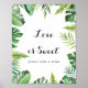 Este cartel de verde tropical amor es dulce es perfecto para una boda moderna o para una despedida de soltera. El diseño presenta hojas de palma verdes y de plátano pintadas a mano con acuarela, elegantemente dispuestas en hermosos ramos.