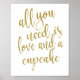 Un elegante cartel de boda de diseño vanguardista, presenta el texto "Todo lo que necesitas es amor y un cupcake" en una fuente de letra script extrovertida, la textura brillante añade un toque festivo y glamuroso. El color de fondo se puede personalizar según tus necesidades y preferencias, por favor contáctame si tienes alguna solicitud especial.