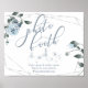 Floral Azul Polvo para combinar con el tema de tu boda, guía a todos hacia la cabina de fotos para tomar grandes fotos del evento. Rosas, hojas y bayas de acuarela en un moderno y chic azul polvo rodean un marco plateado de estilo terrario geométrico con follaje verde salvia. Personaliza el texto, el estilo de letra, el color y el tamaño. Obra original creada para BarefootBride™ por © WhimsicalArtwork™ - Esta es parte de una Suite de Papelería de Boda completa con papelería de boda, baby shower y otros eventos.