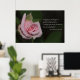 Aquí tenemos un cartel con un verso de la Biblia desde Proverbios 31 de la Reina Valera 1909. El verso lee: "Engañosa es la gracia, y vana la Hermosura: La mujer que teme Jehov á, ésa sera alabada". Proverbios 31:30 RV 1909 El foto ensene una rosa rosada en mi jardin. También puede comprar artículos en ingles.