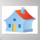 Una bonita casa azul con un techo rojo. Este diseño parece realmente efectivo en este Poster