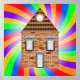 Una casa de ladrillo rodeada de colores arcoiris muy coloridos. Este diseño parece realmente efectivo en este Poster