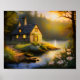 Esta pintura tranquila de una casa de piedra enclavada en el bosque junto a un río que fluye suavemente capta la tranquilidad y el encanto de la naturaleza. Con texturas ricas, tonos terrosos y reflejos de agua serenos, aporta una ambientación acogedora y rústica a cualquier espacio. Perfecta para decoración de cabañas, amantes de la naturaleza o cualquiera que se sienta atraído por escenas idílicas del bosque.