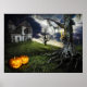 Póster Casa embrujada con lámparas Jack O en Halloween
