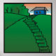 Una casa azul sobre una colina verde. Este diseño parece realmente efectivo en este Poster